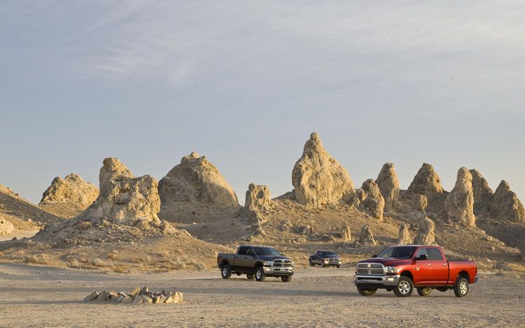 Instead, the Ram 2500 and 3500 use a NOx adsorber with precious metals that convert the NOx into inert gases. Not only does this mean the Ram's emissions and exhaust systems are less complex than those in the upcoming Ford Super Duty and Silverado/Sierra HD (which could improve reliability and help keep maintenance costs down), it also means that, at the dealership, the Ram will very likely have a price advantage over its competitors. And while in this size category diesel is king, there are plenty of heavy-duty truck buyers who prefer gas power. The 5.7-liter Hemi, the Ram's base engine, has the most horsepower (383) and torque (400 pound-feet) of any V-8 in its class -- and even the Ford Super Duty's V-10 has less horsepower.