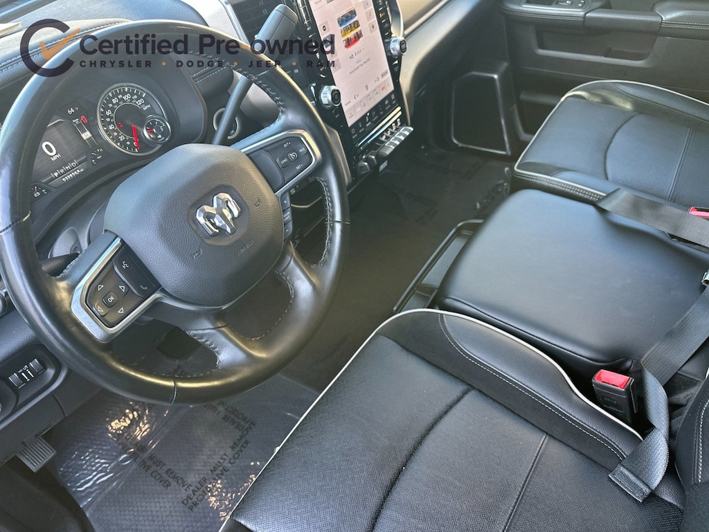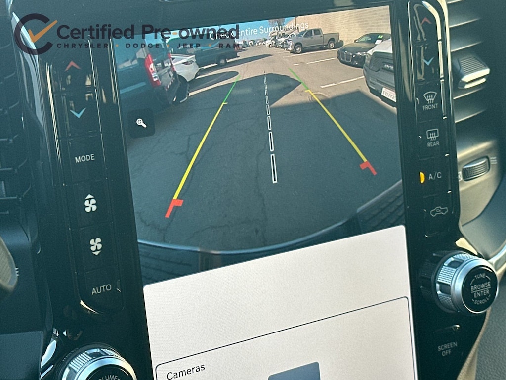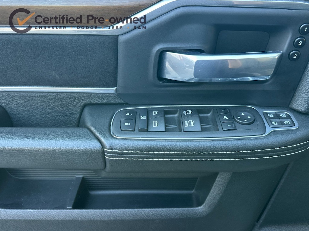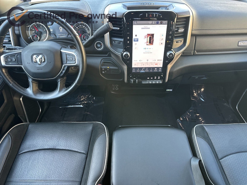 12" Touchscreen Display, 2nd Row In Floor Storage Bins, 4G LTE Wi-Fi Hot Spot, Active Noise Control System, Alexa Built-In, AM/FM radio: SiriusXM with 360L, Apple CarPlay, Auto Adjust In Reverse Exterior Mirrors, Auto Dim Exterior Mirror, Auto High Beam Headlamp Control, Auto Power-Folding Mirrors, Auto-Dimming Exterior Passenger Mirror, Blind Spot & Cross Path Detection, Center Hub, Chrome Exterior Mirrors, Connected Travel & Traffic Services, Connectivity - US/Canada, Disassociated Touchscreen Display, Exterior Mirrors Courtesy Lamps, Exterior Mirrors w/Heating Element, Exterior Mirrors w/Memory, Exterior Mirrors w/Supplemental Signals, Foam Bottle Insert (Door Trim Panel), For Details, Visit DriveUconnect.com, For More Info, Call 800-643-2112, Forward & Reverse Utility Lights, Front LED Fog Lamps, Global Telematics Box Module (TBM), Google Android Auto, GPS Antenna Input, GPS Navigation, HD Radio, Integrated Voice Command w/Bluetooth, Laramie Level 1 Equipment Group, LED Reflector Headlamps, LED Tail Lamps, Mirror Running Lights, Navigation System, Off-Road Information Pages, ParkSense Front/Rear Park Assist System, Power Adjust Mirrors, Power Adjustable Convex Aux Mirrors, Power Adjustable Pedals w/Memory, Power Heated Fold Telescopic Mirrors w/Memory, Power Telescoping Mirrors, Quick Order Package 2HH Laramie, Radio: Uconnect 5 Nav w/12.0" Display, Rain Sensitive Windshield Wipers, Rear Power Sliding Window, Rear Window Defroster, Remote Tailgate Release, Selectable Tire Fill Alert, SiriusXM Radio Service, SiriusXM w/360L, Trailer Tow Pages, Wheels: 18" x 8.0" Polished Aluminum.