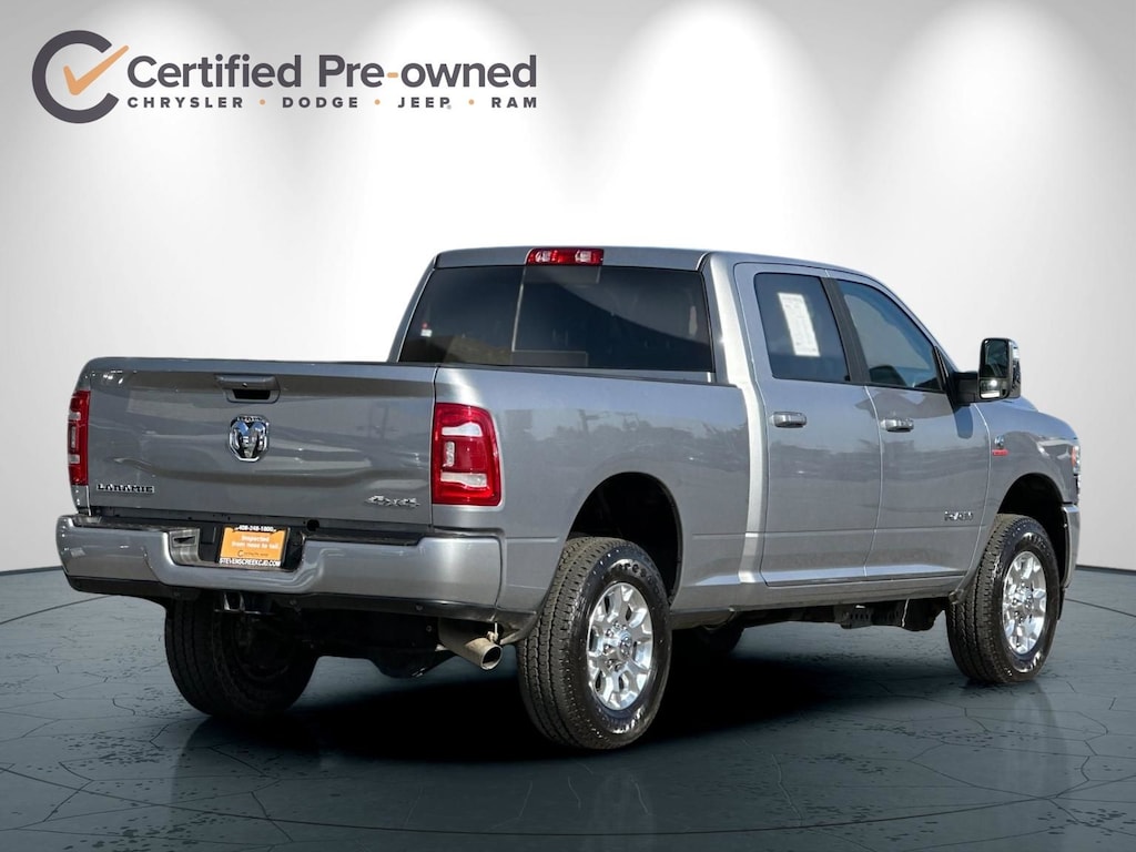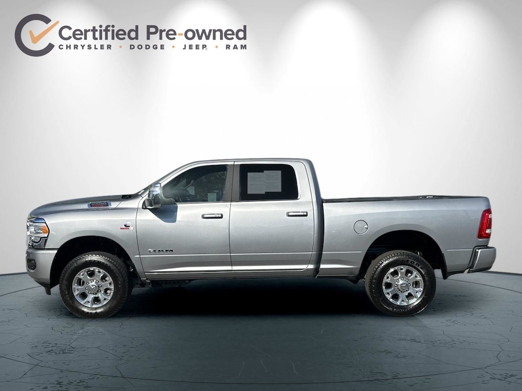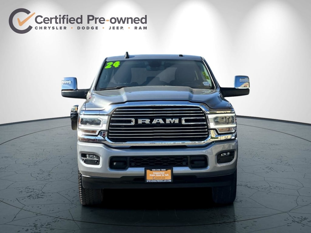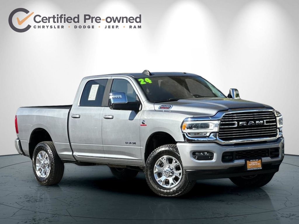 12" Touchscreen Display, 2nd Row In Floor Storage Bins, 4G LTE Wi-Fi Hot Spot, Active Noise Control System, Alexa Built-In, AM/FM radio: SiriusXM with 360L, Apple CarPlay, Auto Adjust In Reverse Exterior Mirrors, Auto Dim Exterior Mirror, Auto High Beam Headlamp Control, Auto Power-Folding Mirrors, Auto-Dimming Exterior Passenger Mirror, Blind Spot & Cross Path Detection, Center Hub, Chrome Exterior Mirrors, Connected Travel & Traffic Services, Connectivity - US/Canada, Disassociated Touchscreen Display, Exterior Mirrors Courtesy Lamps, Exterior Mirrors w/Heating Element, Exterior Mirrors w/Memory, Exterior Mirrors w/Supplemental Signals, Foam Bottle Insert (Door Trim Panel), For Details, Visit DriveUconnect.com, For More Info, Call 800-643-2112, Forward & Reverse Utility Lights, Front LED Fog Lamps, Global Telematics Box Module (TBM), Google Android Auto, GPS Antenna Input, GPS Navigation, HD Radio, Integrated Voice Command w/Bluetooth, Laramie Level 1 Equipment Group, LED Reflector Headlamps, LED Tail Lamps, Mirror Running Lights, Navigation System, Off-Road Information Pages, ParkSense Front/Rear Park Assist System, Power Adjust Mirrors, Power Adjustable Convex Aux Mirrors, Power Adjustable Pedals w/Memory, Power Heated Fold Telescopic Mirrors w/Memory, Power Telescoping Mirrors, Quick Order Package 2HH Laramie, Radio: Uconnect 5 Nav w/12.0" Display, Rain Sensitive Windshield Wipers, Rear Power Sliding Window, Rear Window Defroster, Remote Tailgate Release, Selectable Tire Fill Alert, SiriusXM Radio Service, SiriusXM w/360L, Trailer Tow Pages, Wheels: 18" x 8.0" Polished Aluminum.