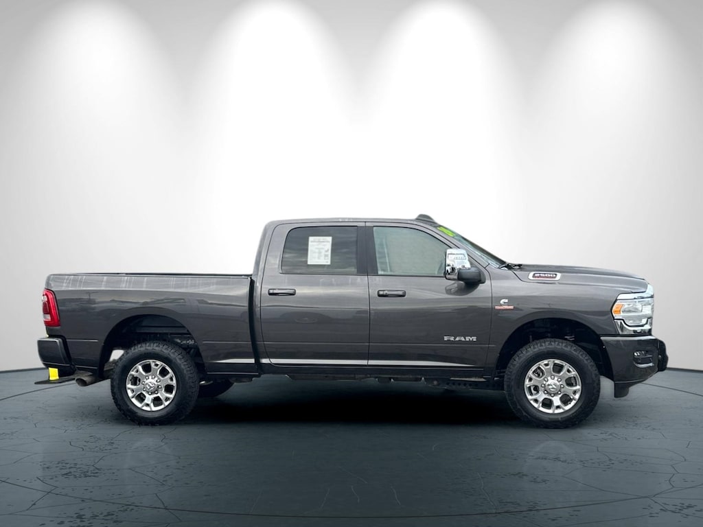 12" Touchscreen Display, 220 Amp Alternator, 2nd Row In Floor Storage Bins, 3.73 Axle Ratio, 4G LTE Wi-Fi Hot Spot, Active Noise Control System, Alexa Built-In, Apple CarPlay, Apple CarPlay/Android Auto, Auto Adjust In Reverse Exterior Mirrors, Auto Dim Exterior Mirror, Auto High Beam Headlamp Control, Auto Power-Folding Mirrors, Auto-Dimming Exterior Passenger Mirror, Blind Spot & Cross Path Detection, Brake assist, Center Hub, Chrome Exterior Mirrors, Connected Travel & Traffic Services, Connectivity - US/Canada, Delay-off headlights, Disassociated Touchscreen Display, Electronic Stability Control, Electronically Controlled Throttle, Exterior Mirrors Courtesy Lamps, Exterior Mirrors w/Heating Element, Exterior Mirrors w/Memory, Exterior Mirrors w/Supplemental Signals, Foam Bottle Insert (Door Trim Panel), For Details, Visit DriveUconnect.com, For More Info, Call 800-643-2112, Forward & Reverse Utility Lights, Front LED Fog Lamps, Fully automatic headlights, Global Telematics Box Module (TBM), Google Android Auto, GPS Antenna Input, GPS Navigation, HD Radio, Heated Front Seats, Heated Steering Wheel, Heated steering wheel, Illuminated entry, Integrated Voice Command w/Bluetooth, Laramie Level 1 Equipment Group, Leather Trim 40/20/40 Bench Seat, LED Reflector Headlamps, LED Tail Lamps, Mirror Running Lights, Off-Road Information Pages, Panic alarm, ParkSense Front/Rear Park Assist System, ParkView Rear Back-Up Camera, Power Adjust 8-Way Front Passenger Seat, Power Adjust Mirrors, Power Adjustable Convex Aux Mirrors, Power Adjustable Pedals w/Memory, Power Heated Fold Telescopic Mirrors w/Memory, Power Telescoping Mirrors, Quick Order Package 2HH Laramie, Radio: Uconnect 5 Nav w/12.0" Display, Rain Sensitive Windshield Wipers, Rear 60/40 Folding Seat, Rear Power Sliding Window, Rear Window Defroster, Remote Tailgate Release, Security system, Selectable Tire Fill Alert, SiriusXM Radio Service, SiriusXM w/360L, Speed control, Split folding rear seat, Tow Hooks, Trailer Tow Pages, Wheels: 18" x 8.0" Polished Aluminum.